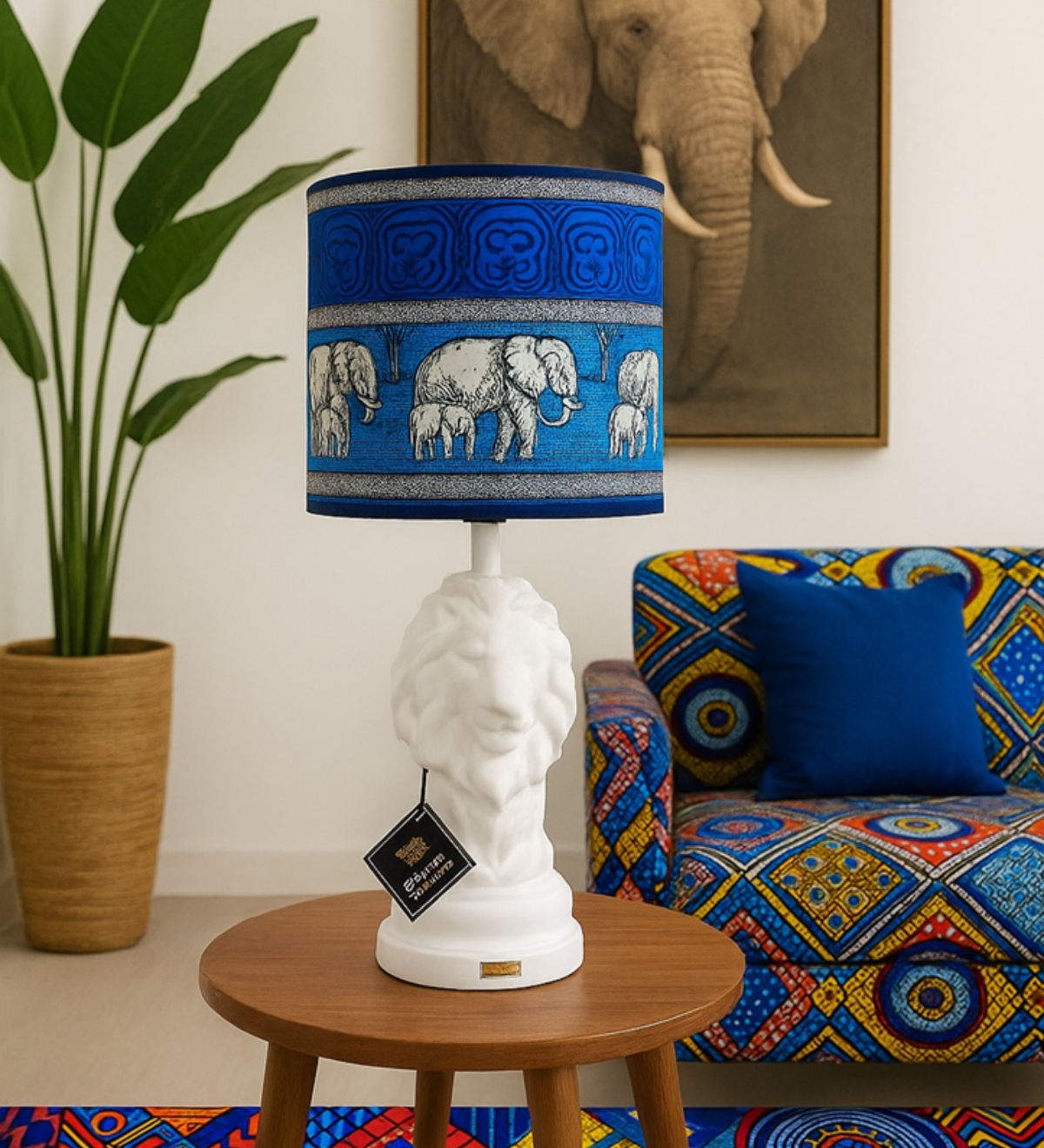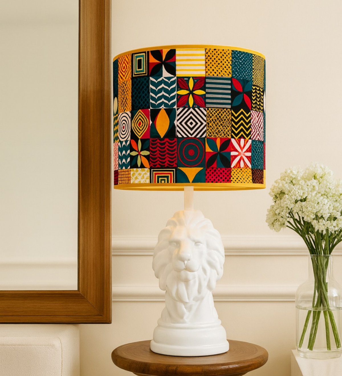 Couronné d’une mosaïque éclatante de couleurs et de symboles, cet abat-jour illumine l’espace comme un chant de liberté et d’harmonie. Son pied en forme de lion, noble et majestueux, incarne la force et la fierté. Ensemble, ils célèbrent l’âme africaine : puissante, créative et intemporelle.