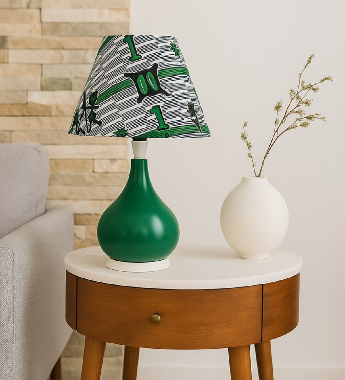 Cet abat-jour irradie d’une chaleur ancestrale, tel un soleil africain se reflétant sur les terres ocre. Ses motifs géométriques dansent comme les ombres portées d’un village au crépuscule, évoquant la richesse culturelle et l’artisanat du continent. Chaque courbe, chaque teinte semble porter l’âme d’un peuple, invitant à un voyage sensuel et spirituel à travers l’Afrique.